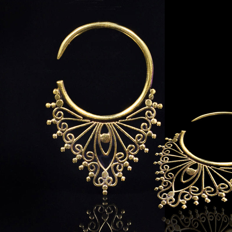 Minimum hole: 2mm Traditional Indian design of a tribal hoop earring for wearing through flesh tunnels, or through 2mm lobes.