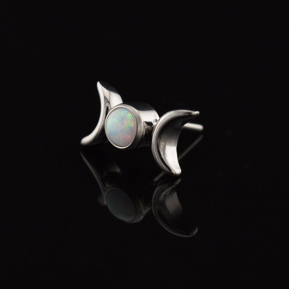 This is a super top quality precision piece of threadless jewellery made from ASTM F-136 titanium. The 'full moon' is a small real opal at 2mm across then entire piece is 6mm wide. This threadless piece comes with a 6mm bar also made from titanium.